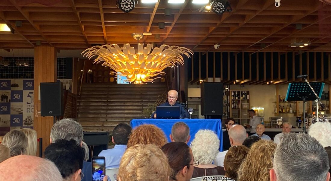 Presentó al ponente la responsable de prensa y comunicación del Real Club Náutico, Encarna Hernández, que destacó la importancia de conservar la memoria de un pueblo. La conferencia partió con un resumen de los tres relatos que a Vicente Blasco Ibáñez inspiró su estancia en Torrevieja a finales del siglo XIX, así como la parte de veracidad en ellos recogida. Pasó a continuación a las leyendas, cinco en concreto, unas más conocidas y otras menos, todas con el poso de ternura del protagonismo de personajes no bien tratados por su época; permítasenos afirmar que estos ocho episodios —u otros más que pudieran recuperarse—, por su interés y su moraleja, son perfectamente peliculables, valga el palabro, al margen del metraje que se les dedicara.