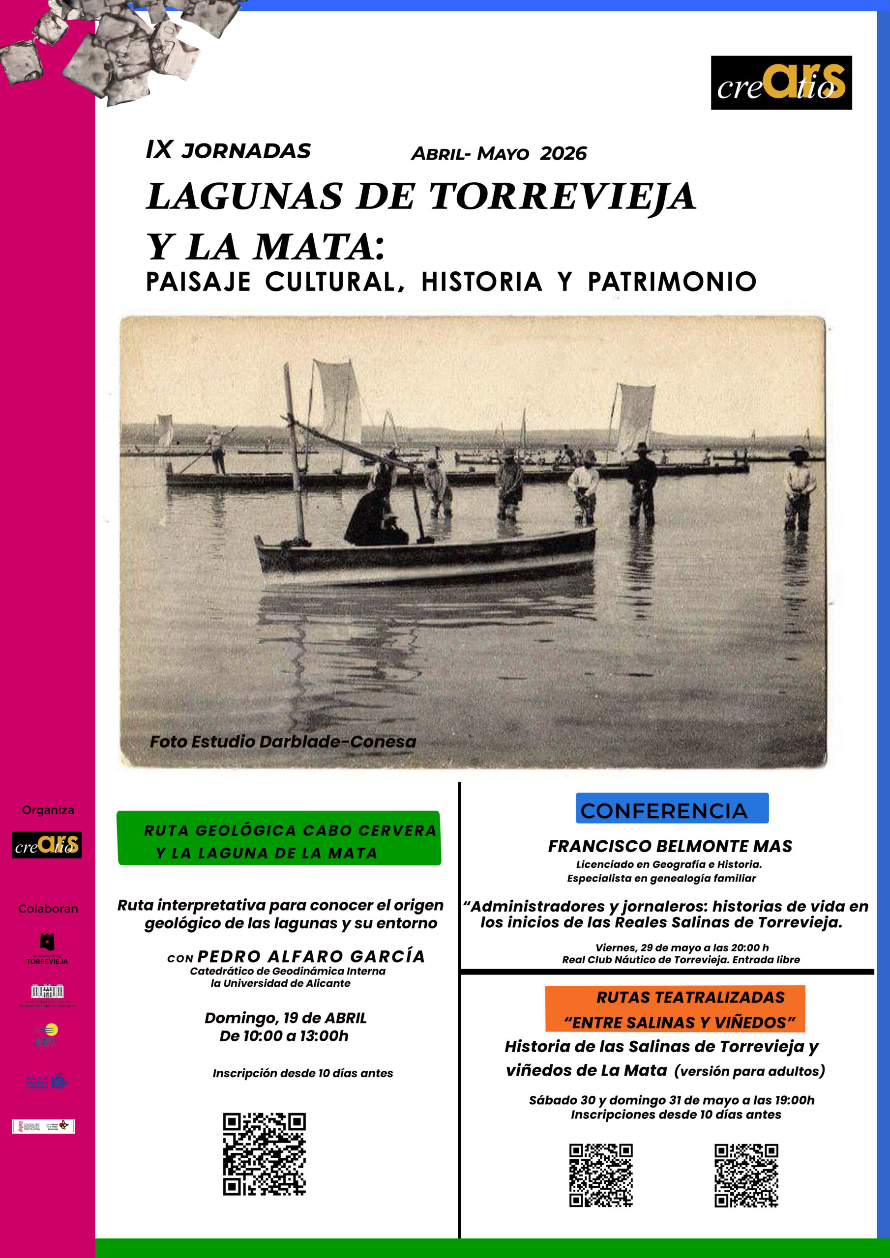 Ars Creatio presenta la novena edición de sus jornadas multidisciplinares dedicadas a las lagunas de Torrevieja y La Mata como patrimonio cultural y natural.